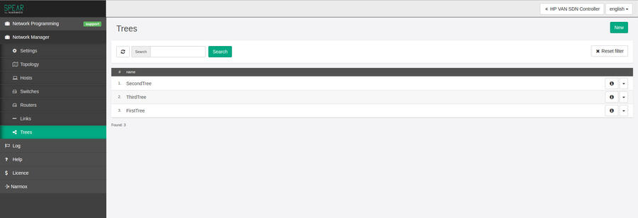 W celu utworzenia nowego drzewa lub modyfikacji istniejącego należy przejść do zakładki Newtork Manager -> Drzewa.